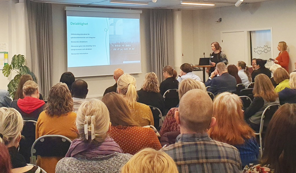 Konferensen tog sin utgångspunkt i Personligt ombuds erfarenhetsrapport, som i år handlar om brister i psykiatrin. De personliga ombuden Johanna och Helena presenterade rapporten. Utifrån två berättelser från uppdragsgivare ringades brister in inom bemötande, delaktighet, samverkan, kontinuitet och tillgänglighet.